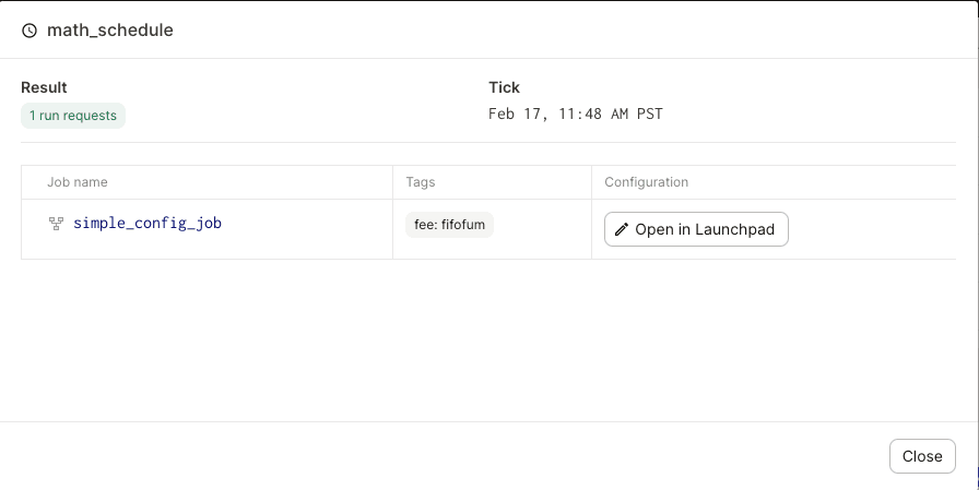 If the evaluation was successful and a run request was produced, you can open the launchpad pre-scaffolded with the config corresponding to that run request.